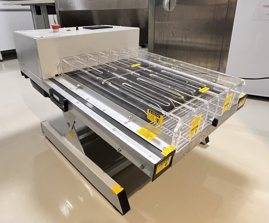 Koşu bandımız, Kontrol ünitesi, Motor Tahrik Sistemi, Konveyör Bant, Şok ızgarası ve 4.3" TFT LCD ekrandan oluşmaktadır. Sıçanlar ve Fareler için ideal koşu parkurunu oluşturmak için iki parkur seçeneği vardır. Koşu yüzey temizlemesi oldukça kolaydır. Ayrıca dışkıları toplamak için şok ızgarasının altında paslanmaz çelikten bir tepsi bulunmaktadır. Sistem içerisinde zamanlayıcı bulunmaktadır. Bu sayede etkinlik süresi ayarlanabilmektedir. Bununla birlikte yüksek güçlü DC motor 1-100mt/dk arasında ayarlanabilir bir hız seçeneği sunmaktadır. Etkin bir hızlanma ve deneydeki hayvanların koşu hızına adapte olabilmeleri için ivmelenme değeri 1-99sn arasında ayarlanabilmektedir. Aynı zamanda bant rampa açısı -30 derece ile +30 derece arasında dijital olarak ayarlanabilmektedir.
